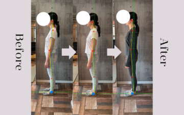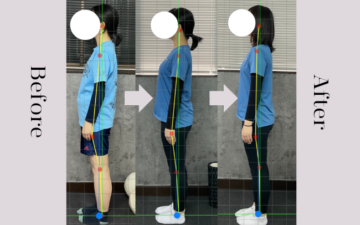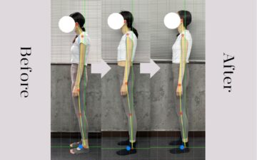 前に出ていた頭の位置が整い、膝の屈曲も改善されて、背筋がシャキッと整いました♩