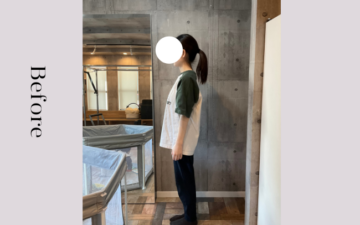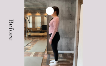 肩が上がり気味で、常に力が入ってしまう姿勢でしたが、回数を重ねる毎に腰や肩が力まない、自然な立ち方になりました♡